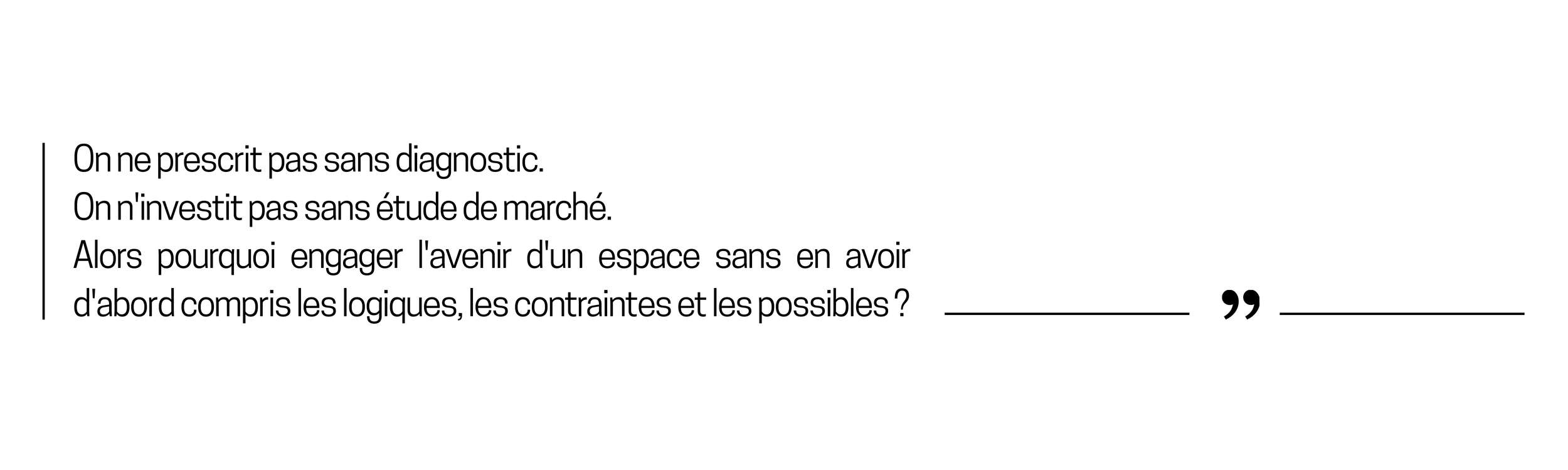 On ne prescrit pas sans diagnostic. On n'investit pas sans étude de marché. Alors pourquoi engager l'avenir d'un espace sans en avoir d'abord compris les logiques, les contraintes et les possibles ?